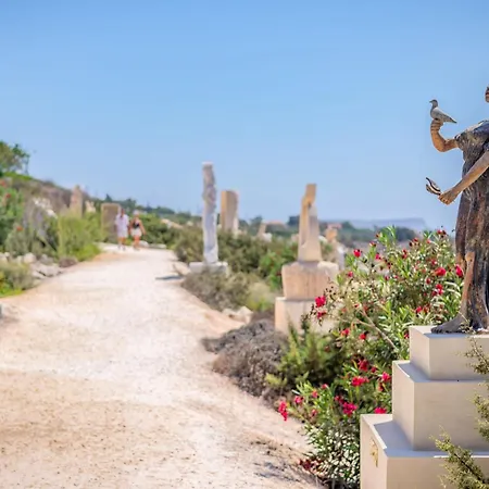 Nissi Beach Resort is elegantly set along a private stretch of Nissi Bay, featuring spacious accommodations with balconies overlooking the lagoon. Guests can relish in three onsite restaurants serving varied cuisines and multiple beach kiosks for snacks. A children's club, shallow pools, and playgrounds cater to younger guests, while adults can unwind at the spa or participate in various water sports. Nearby attractions include WaterWorld Themed Waterpark, which is just 10 minutes away. The hotel's layout, surrounded by lush gardens, creates a serene environment for relaxation.