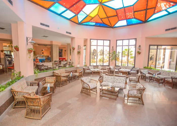 Empire Hotel Aqua Park, located in Hurghada's Al-Dahar district, provides spacious accommodations with private balconies for families. With three restaurants serving a range of cuisine, guests can enjoy dining without needing to leave the hotel. The hotel is a mere 400 meters from the beach, allowing easy access for sunbathing and water activities. The health club offers facilities for relaxation after days spent exploring the area. Recreational activities such as billiards and beach volleyball make it an active holiday spot for families.