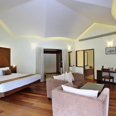 Silent Shores Resort & Spa, located by a serene lake, provides a relaxing atmosphere with modern rooms that feature wooden flooring and private balconies. The resort includes dining options catering to various tastes, an outdoor swimming pool, and water sports facilities. Families can also engage in activities like squash or enjoy a relaxing massage at the spa. Just 11 km from Mysore Zoo and 19 km from the airport, it makes for a peaceful family getaway.